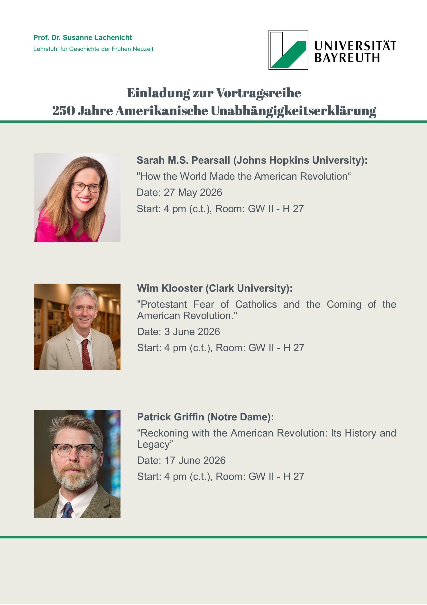 Einladung zur Vortragsreihe 250 Jahre Amerikanische Unabhängigkeitserklärung